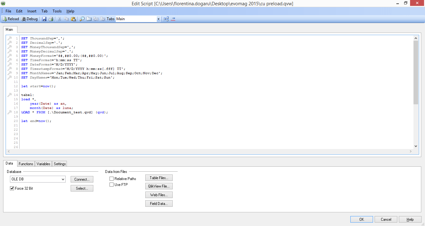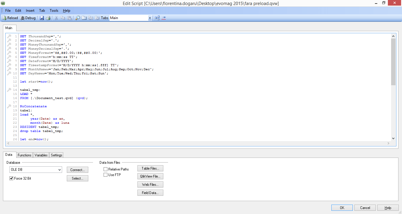 Still, if the reload time is not critical for you, the preload approach is bringing more readability, plus the option to have the QlikView™ functions used together with a SQL SELECT command and some additional WHERE, WHILE or GROUP BY clauses, if needed.