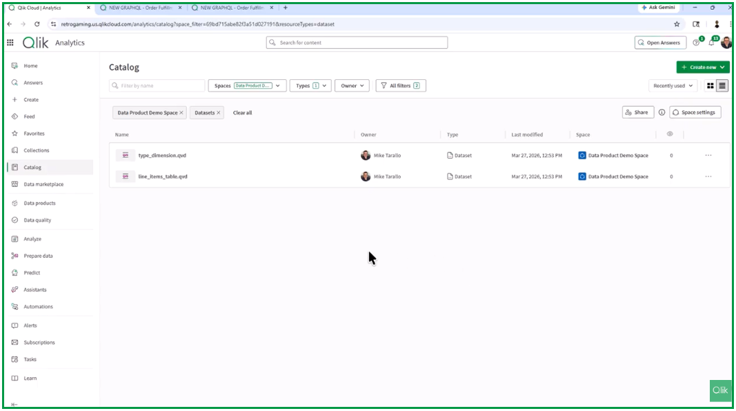 Ca o scurtă recapitulare, punctele de acces pentru Data Products (Produsele de date), Data Marketplace și Data Quality (Calitatea datelor) sunt acum accesibile direct în Qlik Cloud Analytics, prin intermediul Activity Center. Anterior, acestea erau disponibile doar în Qlik Talend Cloud Data Integration.
